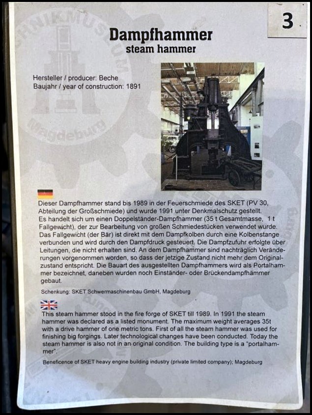 Młot używany był w Schwermaschinenbau Kombinat Ernst Thälmann (nazwana na cześć przedwojennego przewodniczącego komunistycznej partii Niemiec) do roku 1989 a w 1991 został uznany za zabytek. Co ciekawe, firma ta nadal funkcjonuje pod nazwą SKET, używa już jednak bardziej precyzyjnych i nowocześniejszych maszyn.