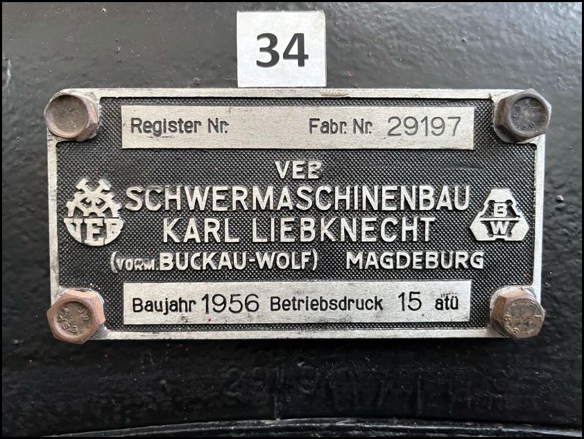 Kolejna lokomobila jest nam szczególnie bliska, bo jest jedną z ostatnich lokomobil parowych wyprodukowanych w Magdeburgu w roku 1956. Nosi numer fabryczny 29197, natomiast sprowadzona w adadadadzeszłym roku do Polski może poszczycić się numerem 29199 i jest prawdopodobnie ostatnią taką maszyną produkcji kombinatu Schwermaschinenbau Karl Liebknecht, ex. Buckau Wolf.