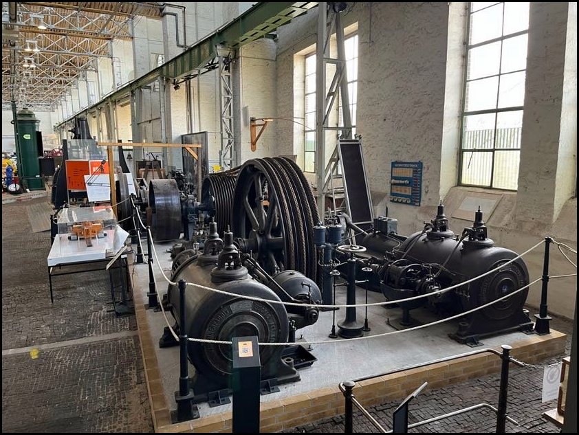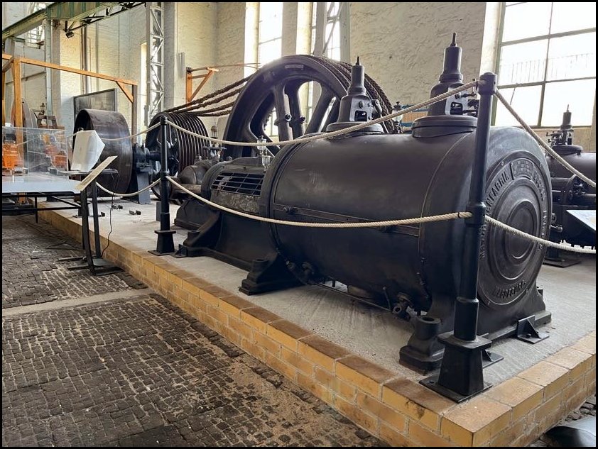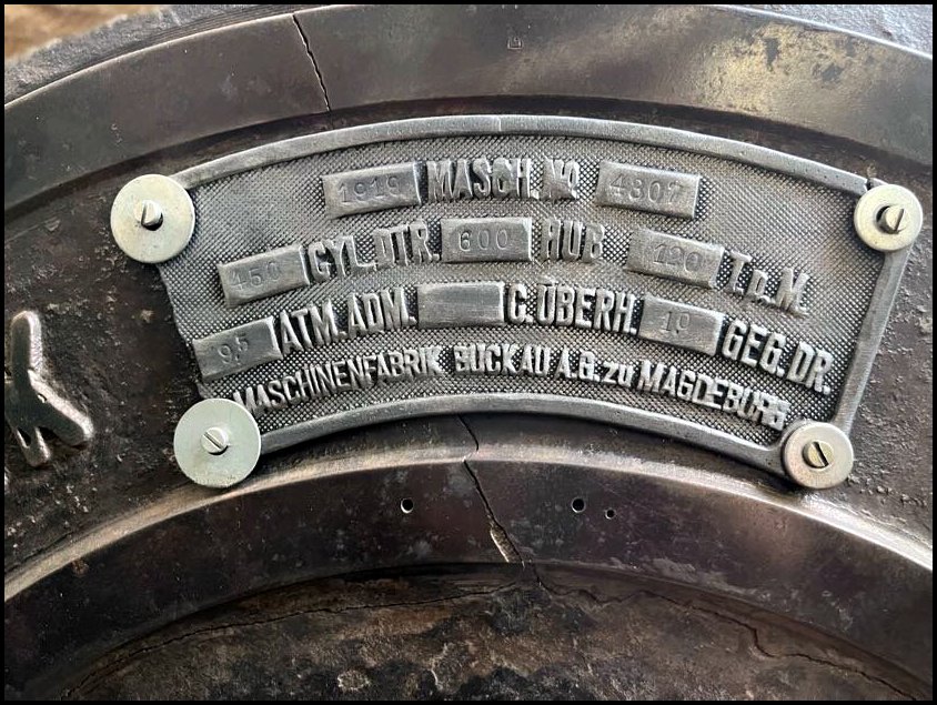 Następnym eksponatem jest dwucylindrowa sprzężona maszyna parowa produkcji Maschinenfabrik Buckau AG z Magdeburga, wyprodukowana w roku 1919. Szczęśliwie po zastąpieniu przez silniki elektryczne maszyna została zdemontowana i zmagazynowana rozmontowana na części, w roku 2014 mogła więc zostać przewieziona do muzeum w Magdeburgu.