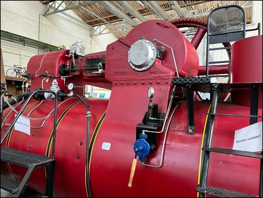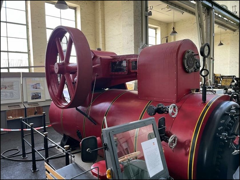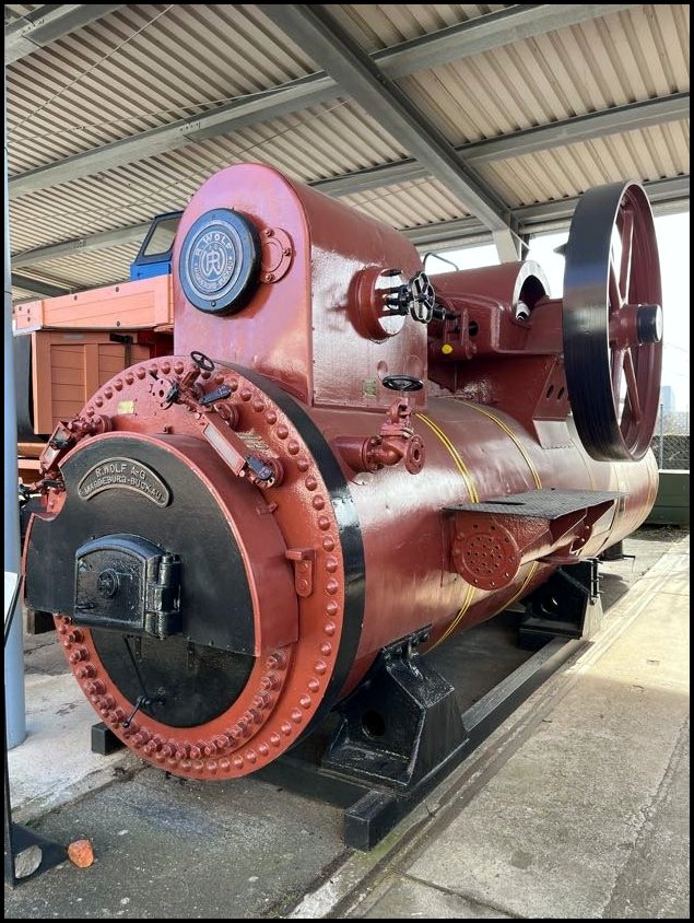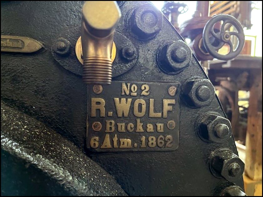 I tutaj perełka – prastara lokomobila stacjonarna fabryki Wolf Magdeburg z numerem fabrycznym 2 (!), a wyprodukowana w 1862, przy czym lokomobila z numerem 1 od 1904 znajduje się w Deutsches Museum w Monachium!