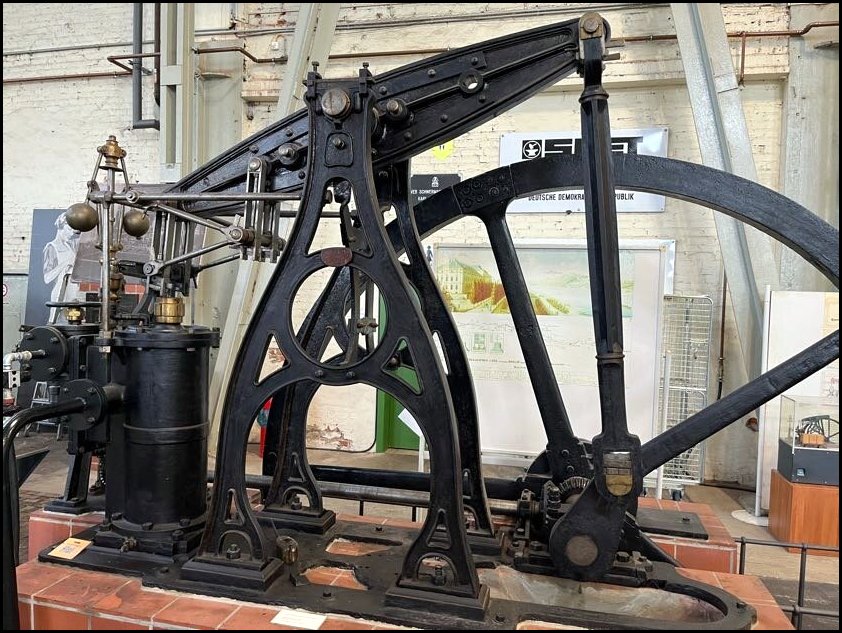 Ale zaraz znowu maszyna parowa, jeszcze starsza, bo z 1847, produkcji firmy Schöttler & Co. również z Magdeburga. Maszyny z balansjerą są prawdziwą rzadkością i pochodzą z wczesnego okresu rozwoju maszyn parowych.