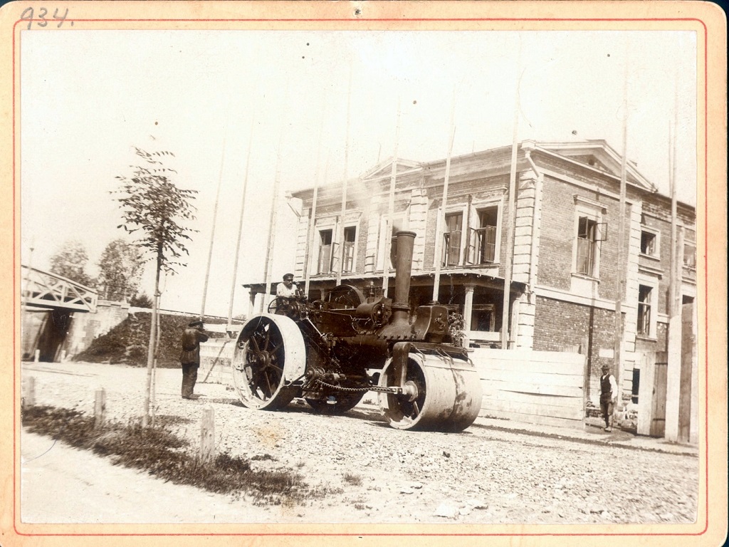 Bohaterem obydwu zdjęć jest walec produkcji brytyjskiej firmy Aveling & Porter, tak znanej z produkcji walców parowych, jak nie przymierzając, Adidas z produkcji adidasów. Jeśli pod koniec XIX wieku jakieś miasto mogło sobie pozwolić na zakup parowego walca, z dużym prawdopodobieństwem był to właśnie Aveling – jako że Wielka Brytania przewodziła rewolucji przemysłowej, europejskie firmy nie potrafiły w tamtym czasie wyprodukować maszyn które mogły się z nimi równać.