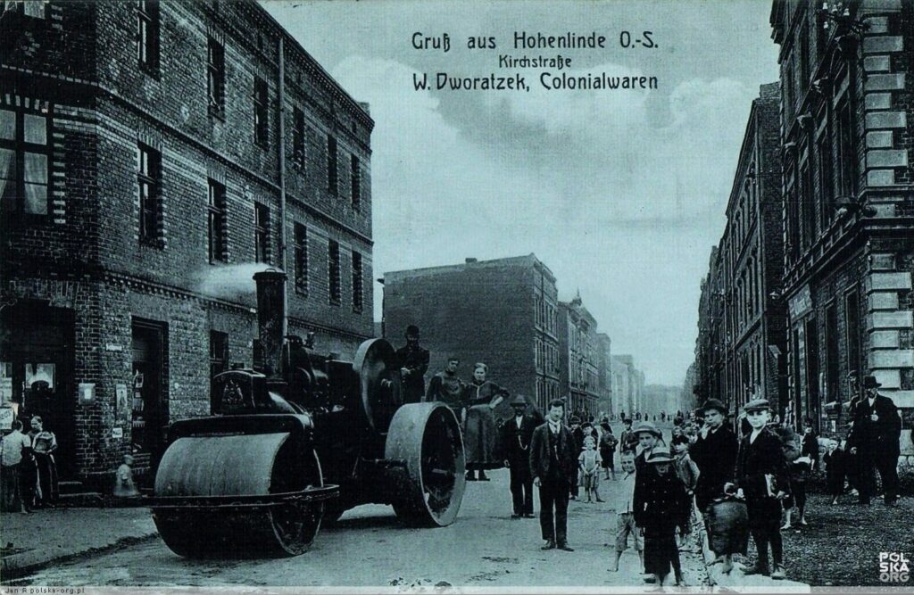 120 lat temu sytuacja miała się zgoła inaczej. Wizyta ogromnej parowej maszyny oznaczała nie tylko mniej dziur w miejscowej drodze, ale i wydarzenie w życiu miejscowej społeczności. Każdy chciał wielką maszynę zobaczyć z bliska, całości przyglądały się chmary licznych wtedy dzieci, można też było zapozować do fotografii – nawet kobieta w górnośląskiej, świątecznej kiecce wdrapała się na wielką maszynę.